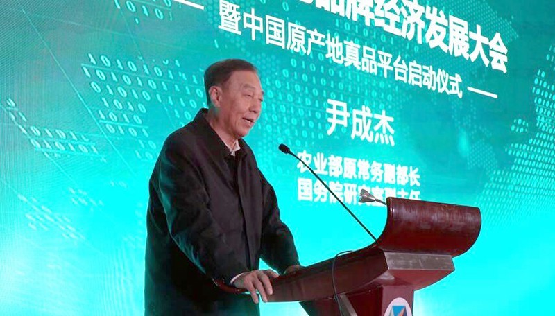 农业部原常务副部长、国务院研究室副主任尹成杰发表了推动中国原产地品牌经济发展的主题演讲
